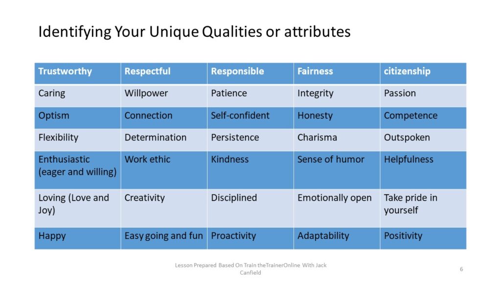 Identifying Your Unique Qualities or attributes